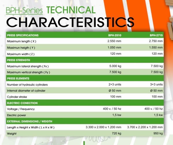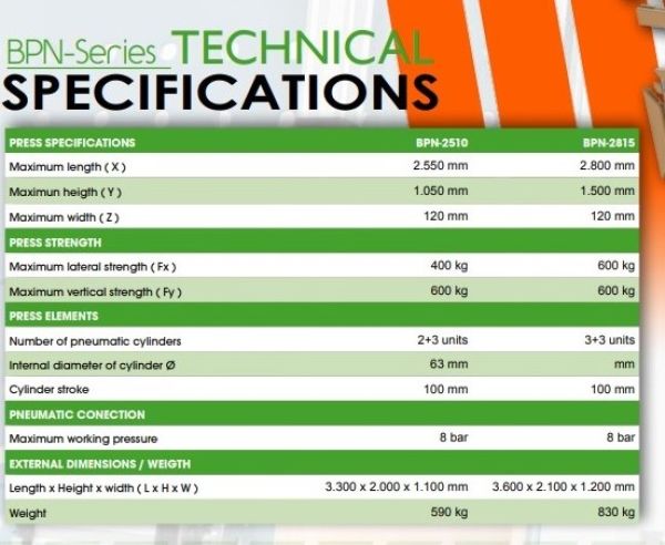 Hulpladepressene kan leveres enten som hydrauliske BPH eller med trykluft BPN