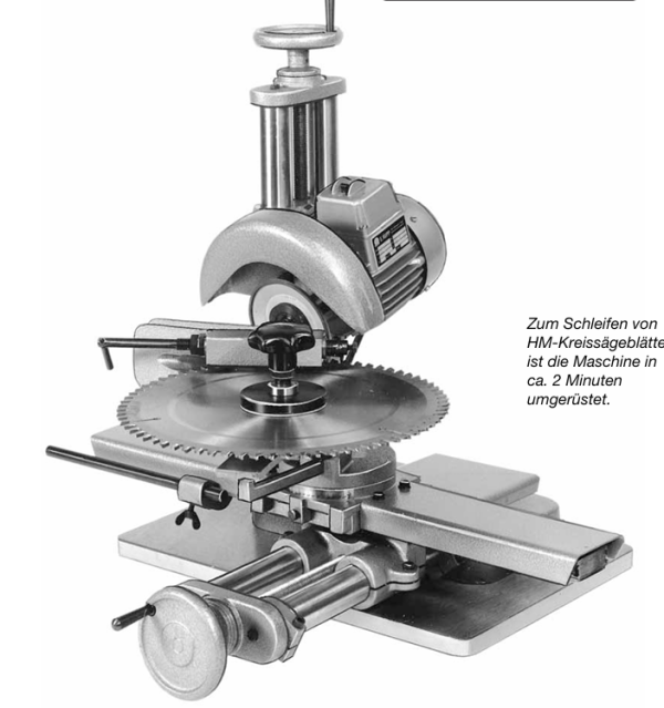 - Werkzeugschleifmaschine Typ FS zum Schärfen von Nut-, Füge-, Falz- und Profilmessern, Schlitzscheiben bis 400 mm Durchmesser, Messer, Oberfräser, HM-Kreissägeblätter etc.