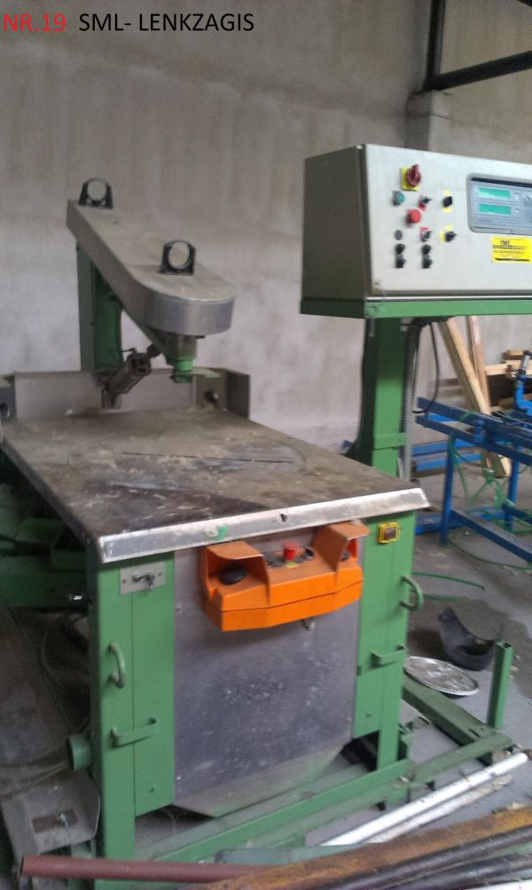 | Maskintype SML, Er i god stand, Halvautomatisk, Med automatisk transport bånd. https://pemaskiner.dk/item/hundegger-sc-3-speed-cut-maskine/ | |