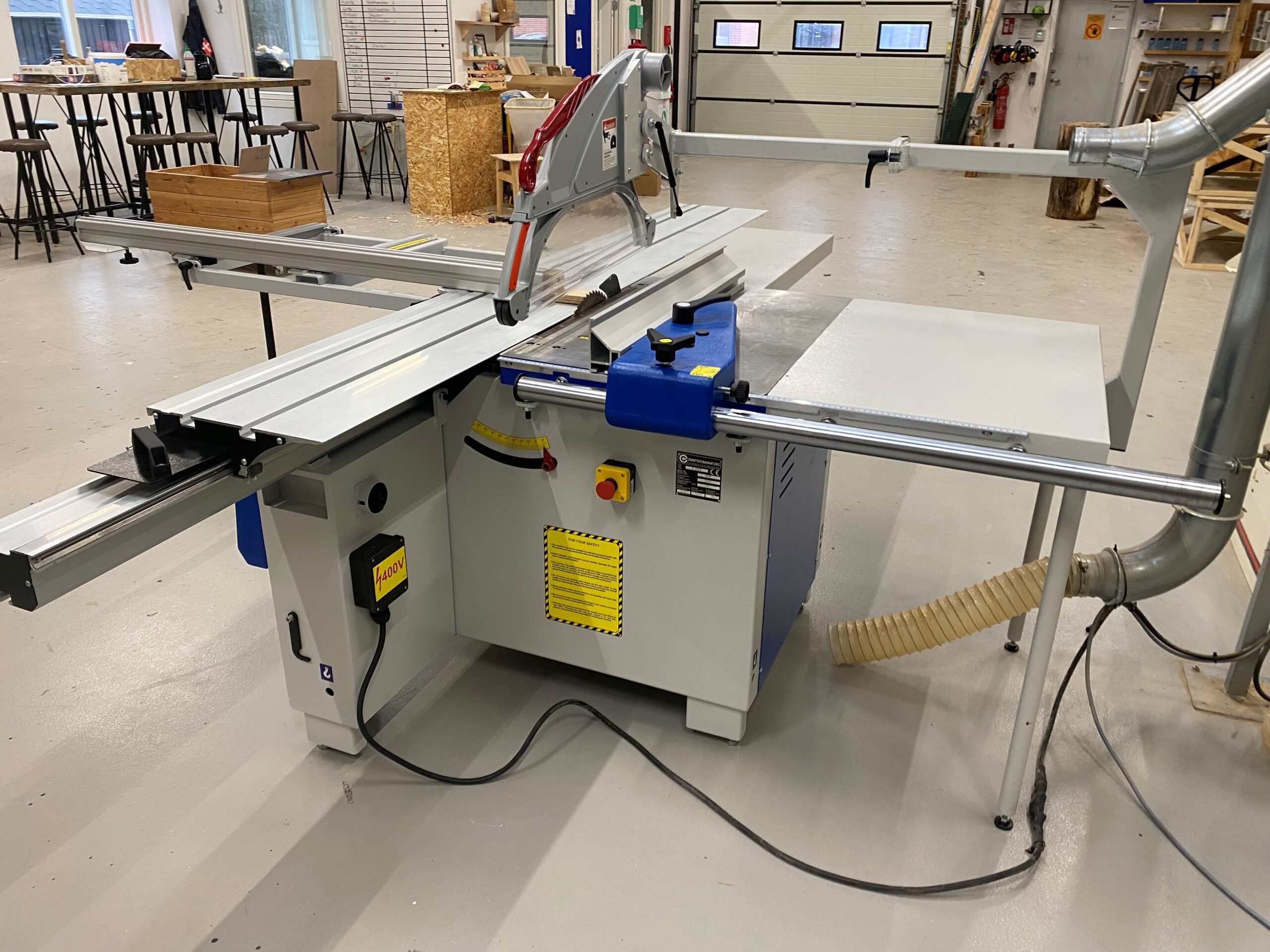 FGU Silkeborg valgte også en formatrundsav fra NIKMANN type S 315A med elektrisk klingebevægelser op/ned og kip med digitaldisplay udlæsning, rullebord 2600 mm.